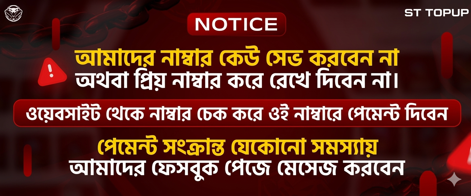 ST TOPUP এখন আরও দ্রুত! দিন-রাত 24 ঘন্টা টপ-আপ করুন,যেকোনো সমস্যায় আমাদের WhatsApp যোগাযোগ করুন।